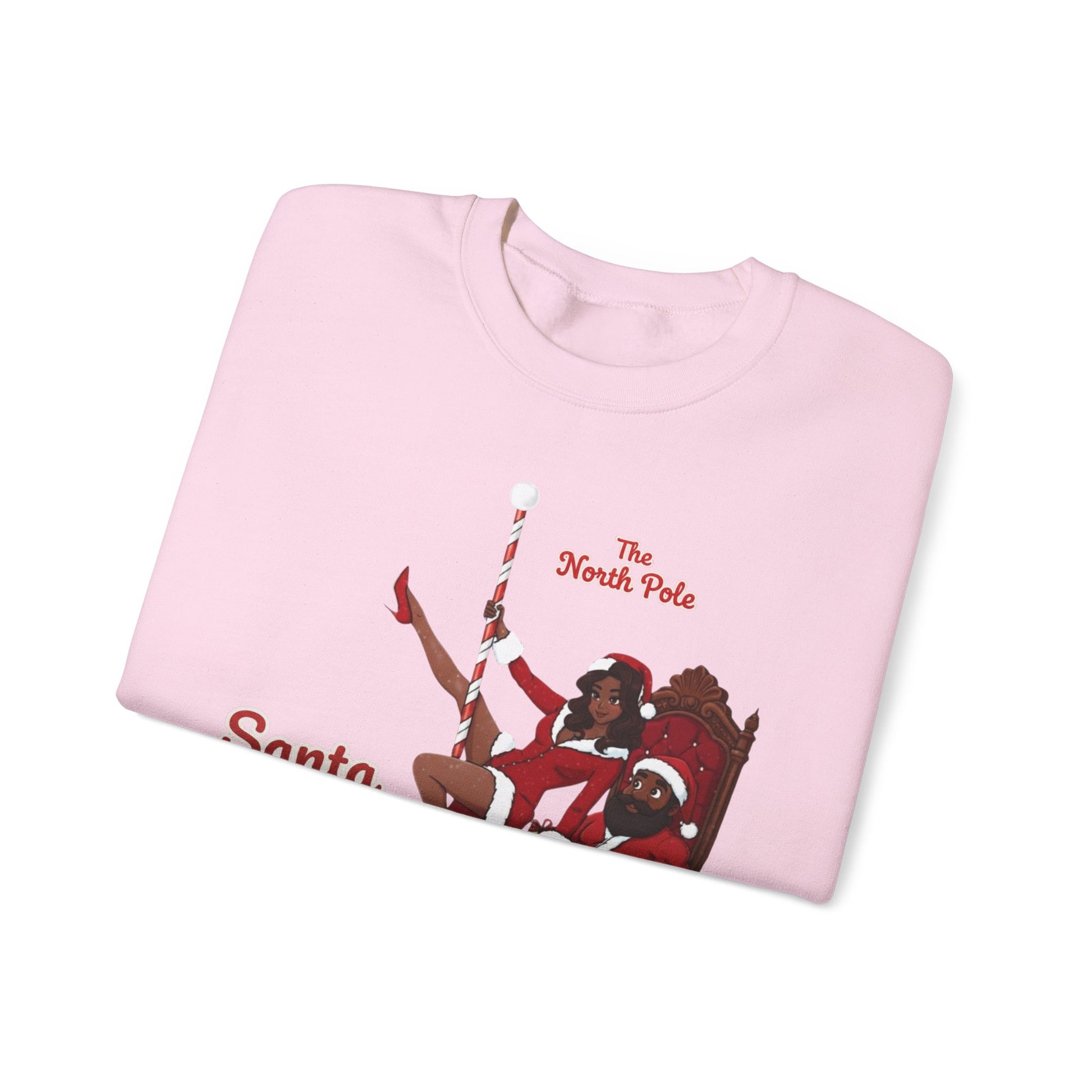 Sexy Santa Baby unisex Christmas sweater for holiday gatherings. This cozy sweatshirt is perfect for adding a touch of festive flair to your winter wardrobe. Ideal for adults looking to embrace the holiday spirit.