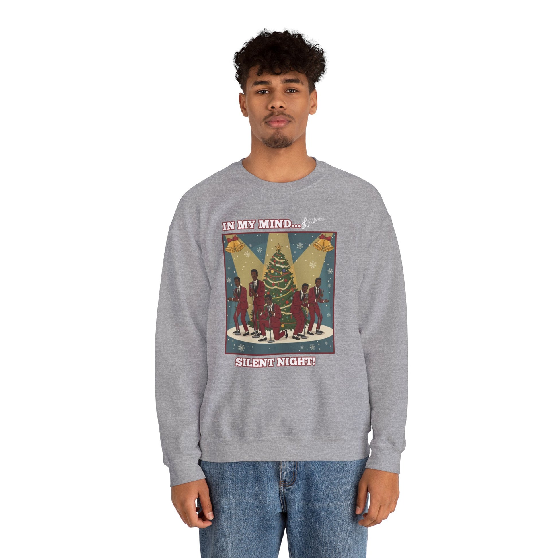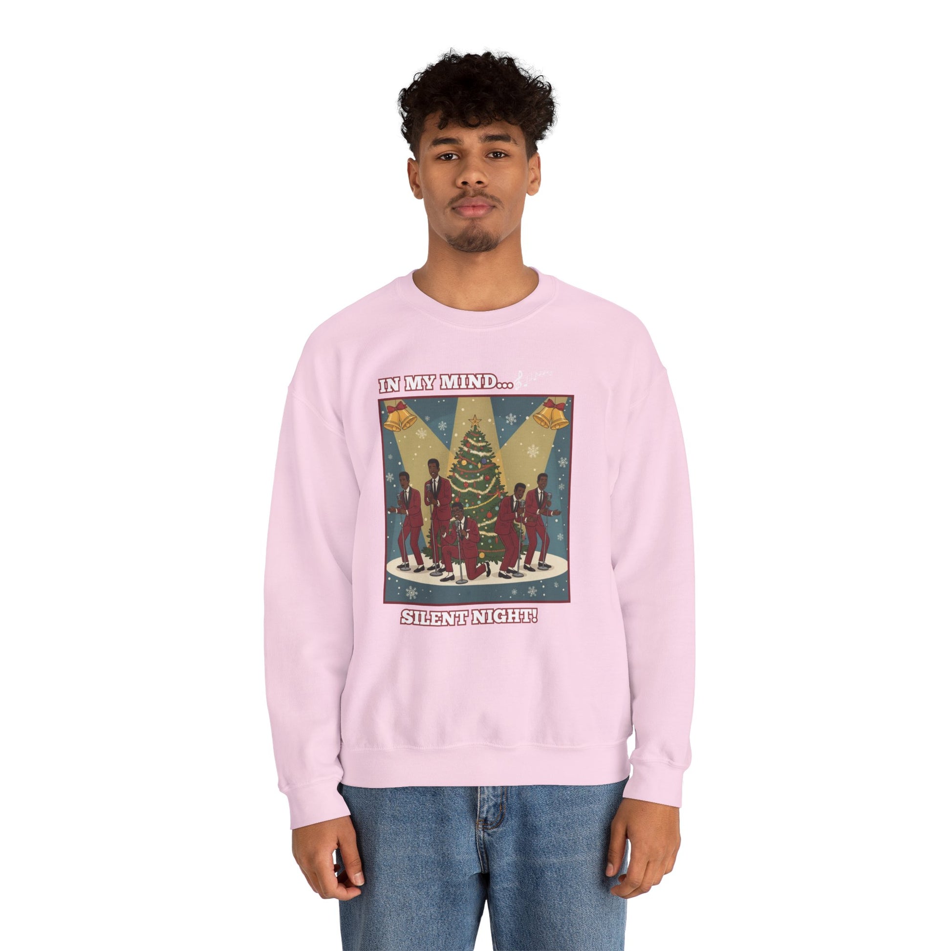 Get into the holiday spirit with this 'In My Mind' Ugly Christmas Sweatshirt inspired by the popular old school R&B group The Temptations. Perfect for those who love festive and nostalgic designs, this unisex sweatshirt is ideal for adults looking to stand out during the Christmas season.